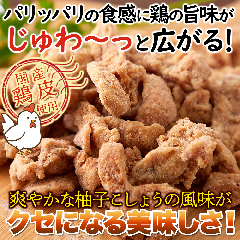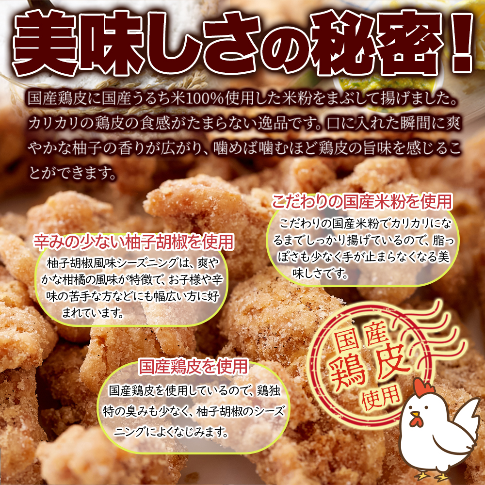 パリッパリの食感に鶏の旨味!!!国産の鶏皮を使用した爽やかな柚子こしょうの風味がクセになるおつまみです!