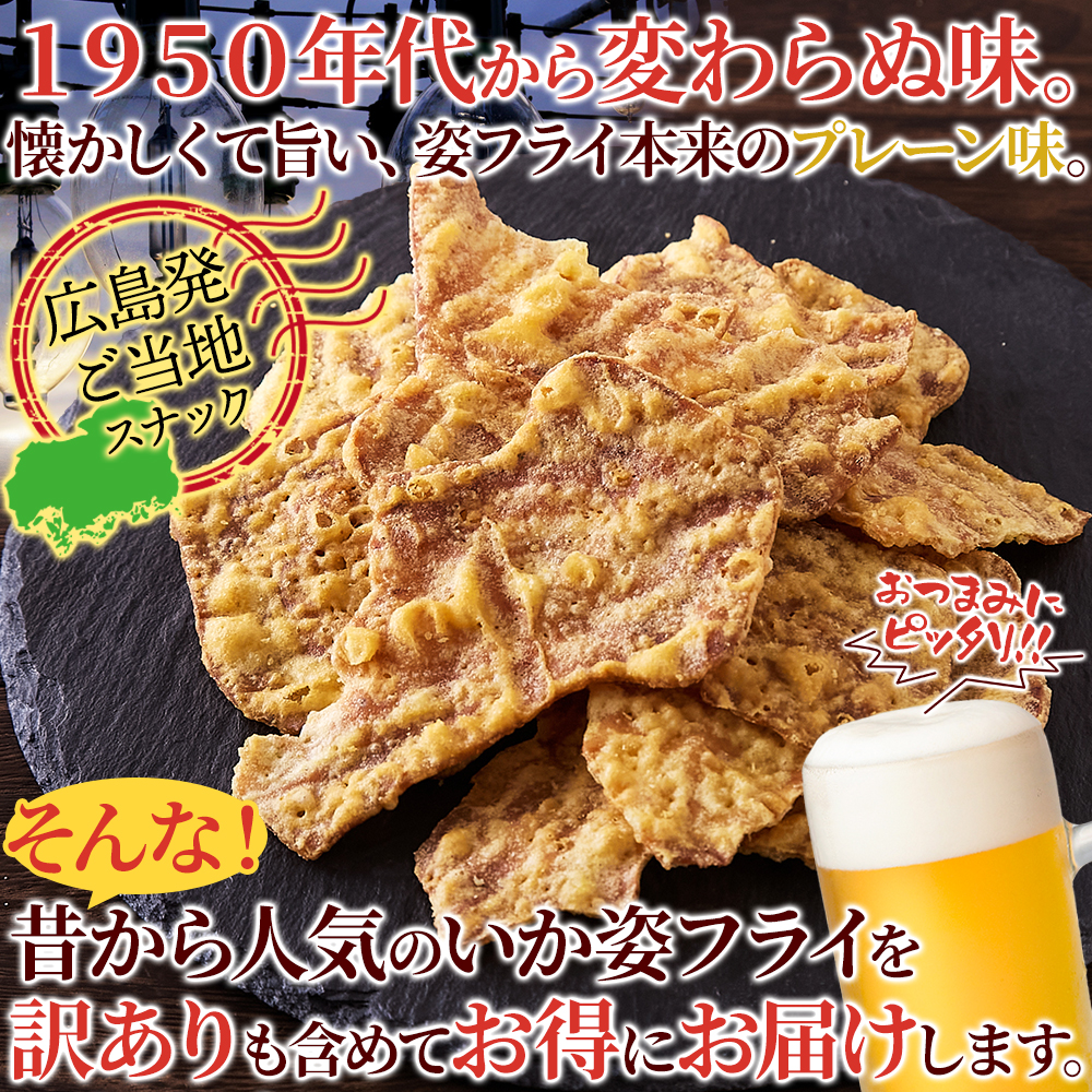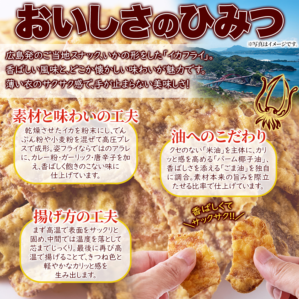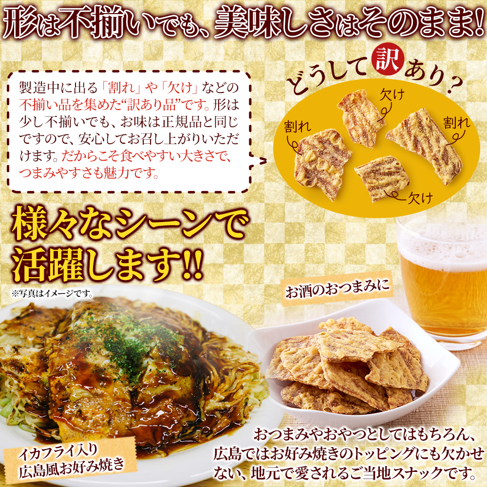広島発のご当地スナック、いかの形をした「イカフライ」。割れや欠けも含む訳あり品も含めてお得にお届けします。