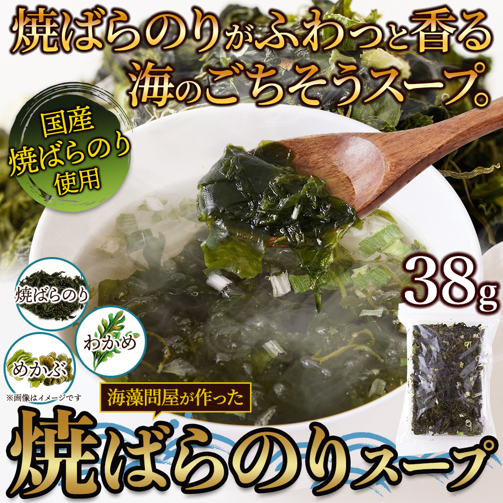 ※独占店舗品※ 国産焼ばらのり使用!3種の海藻入り♪焼ばらのりスープ38g