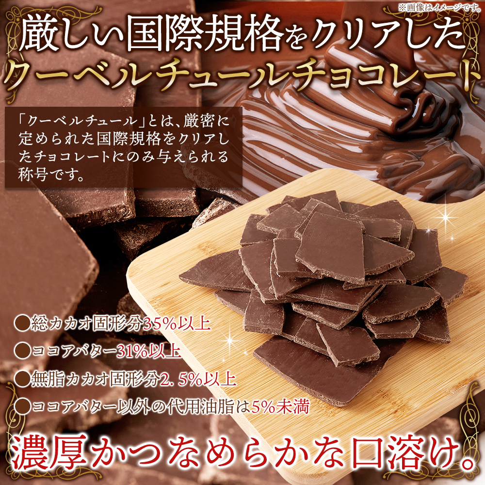とろける口溶けとやさしい甘みが魅力!クーベルチュール使用の濃厚ミルクチョコレート。