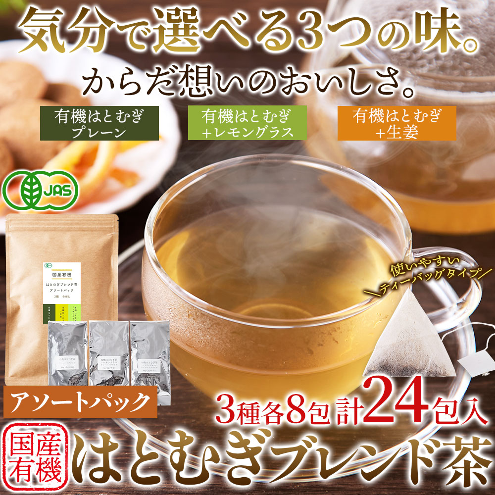 ■アナラボ■ 国産有機はとむぎブレンド茶アソートパック3種 各8袋計24包入り