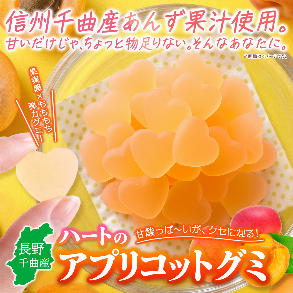 果実感×もちもち弾力。長野県千曲産のあんず果汁を使用した、キュンと甘酸っぱいグミ。グミでは珍しい個包装!