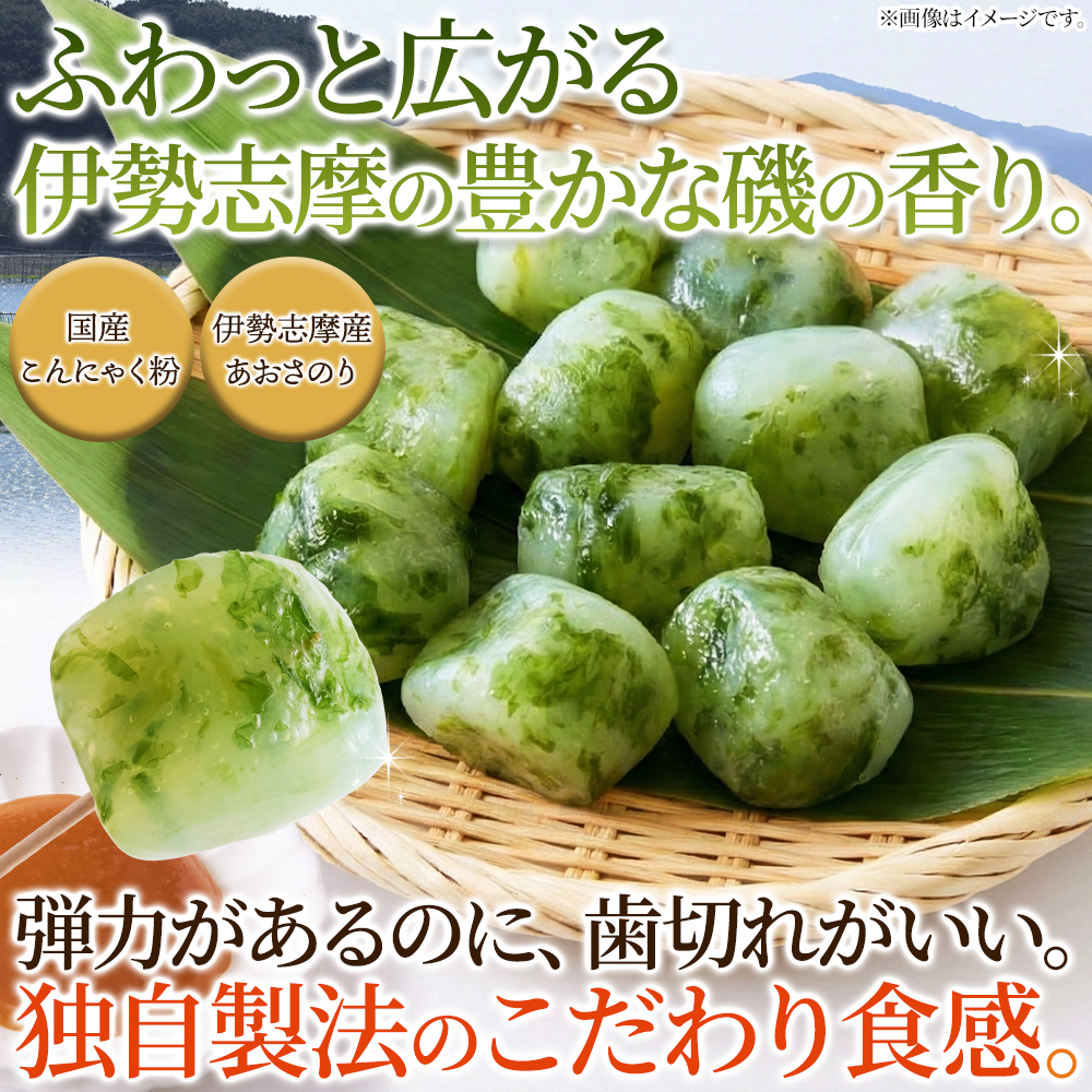 ①伊勢志摩産あおさの素材と香りを活かし、厳選したこんにゃく原料を使った逸品!!長野の老舗メーカー「上高地みそ」の信州米みそを使用したからし酢みそ付きなのもポイントです!!