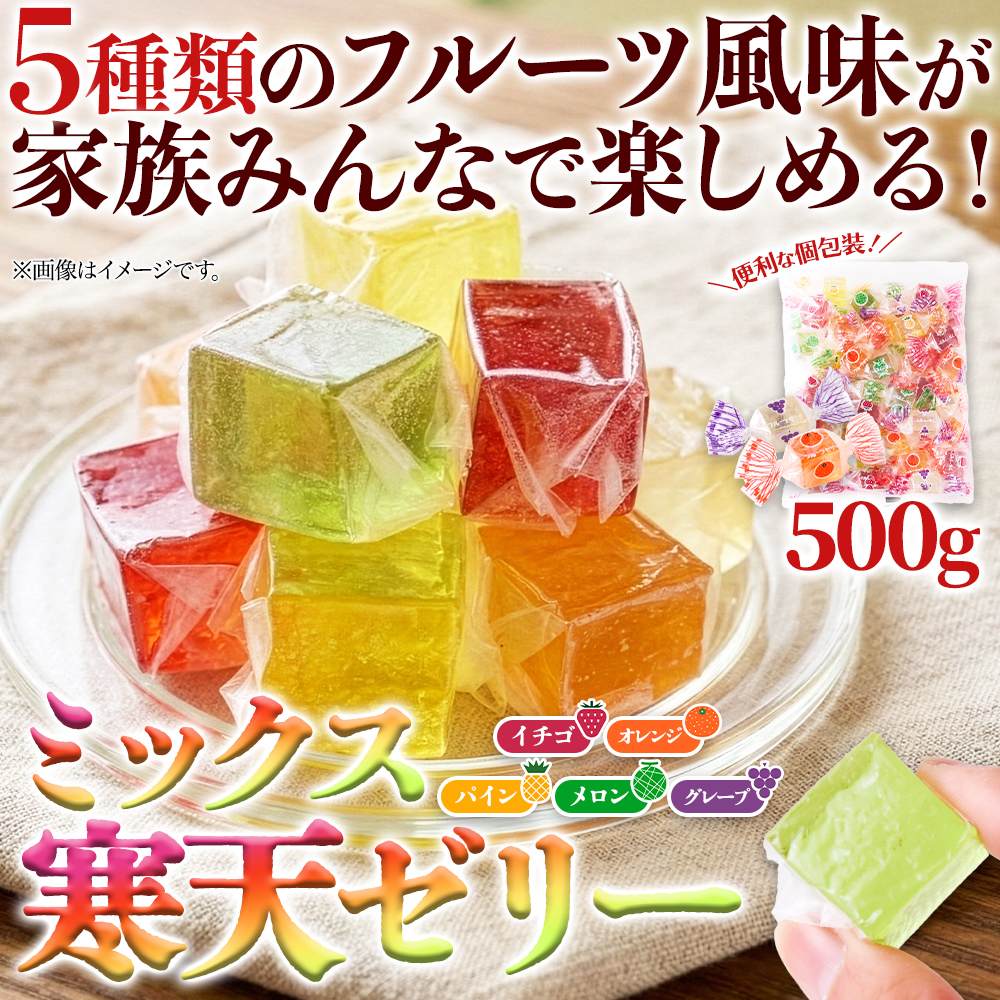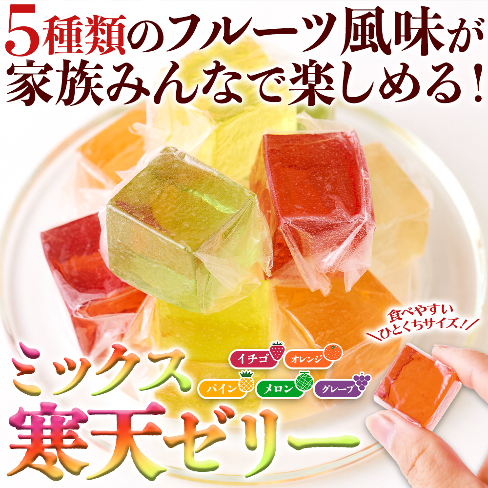 ※独占店舗品※ 長年愛されるレトロなフルーツ風味の寒天ゼリー! ミックス寒天ゼリー5種500g