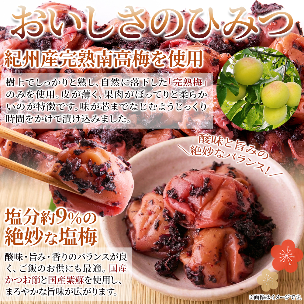 紀州南高梅にかつおの旨みがたまらない!塩分約9%でご飯との相性抜群です!